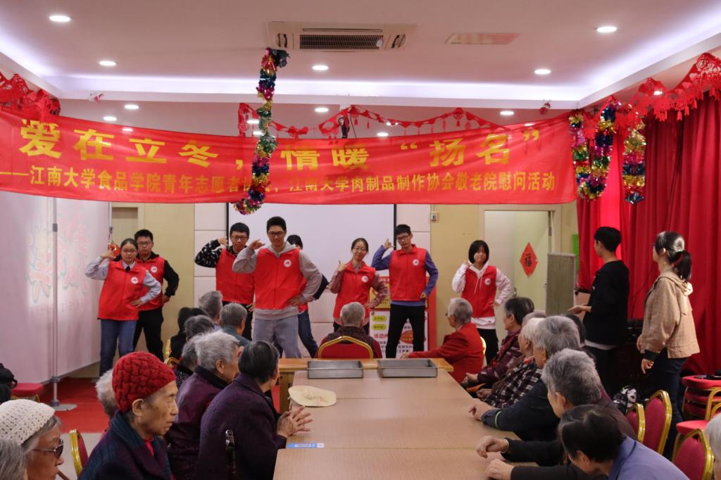 青年志愿者协会全体成员联合肉制品俱乐部在无锡市扬名幸福颐养院举办了以“爱在立冬,情暖扬名”为主题的敬老院慰问活动。