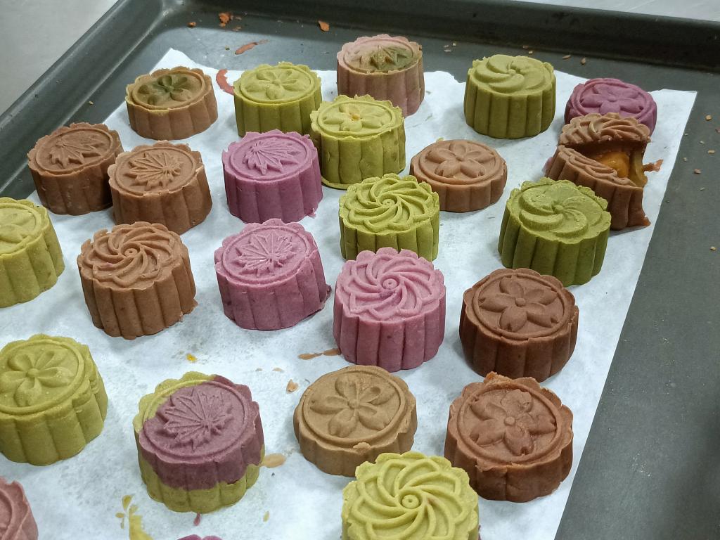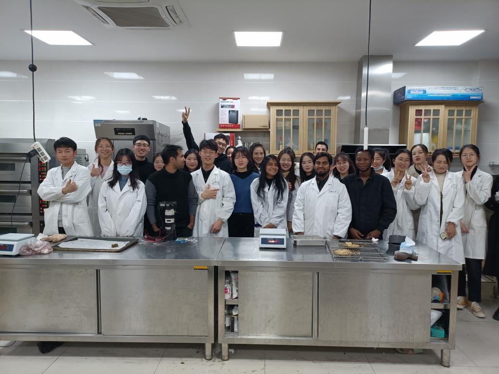 游戏过后,同学们品尝了亲手制作的戚风蛋糕和桃山皮月饼,纷纷表示活动体验感非常好,感受烘焙过程的同时也锻炼了语言交流能力。活动最后,中外学生进行合影留念。