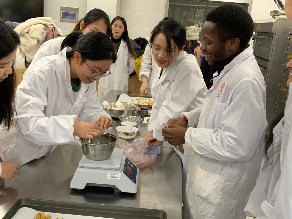 工艺大厅举办了“江南餐厅—舌尖上的双C(Cooking And Communication)”中外交流活动。来自国际教育学院的5名国外学生与来自91猫先生