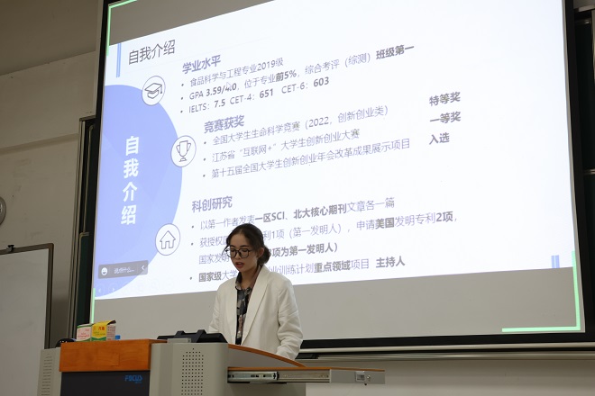 首先,杨光宝简要介绍了高校学科竞赛的意义、类别与相关政策,帮助同学们更加系统地了解科创活动。随后,第八届江苏省“互联网+”大学生创新创业大赛与第十三届“挑战杯”中国大学生创业计划竞赛获奖代表金俊男、2021年全国大学生生命科学竞赛(创新创业类)特等奖获奖代表陈烨、第四届普罗星淀粉创新创意大赛一等奖获奖代表张睿逸等依次进行经验分享。他们从科创竞赛的具体流程、产品设计、团队分工、实现方法等方面展开交流,向同学们推荐了获得竞赛信息和灵感的有效途径,并针对如何平衡课业与竞赛的关系、大学生活规划等方面提出建议。在问答环节中,学长学姐们的耐心解答进一步深化了新生对科创竞赛的认知。