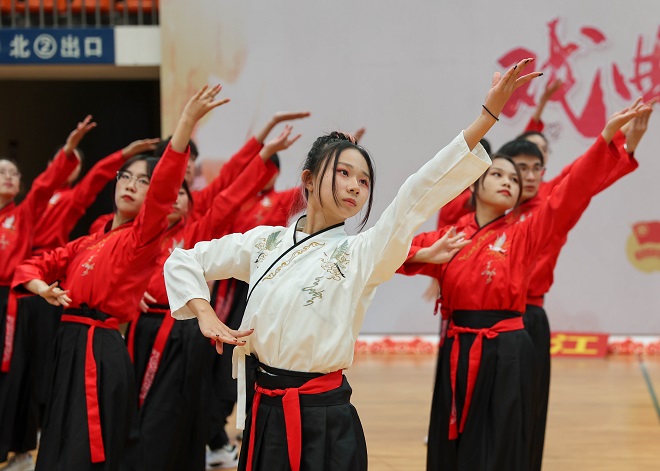 的选手们入场井然有序,动作整齐划一,或长袖飘飖、裙袂生风;或蛾眉轻敛、素手成拳,食品学子在比赛中精神饱满、动作整齐划一,赢得了在场观众的阵阵掌声。表演最后,91猫先生