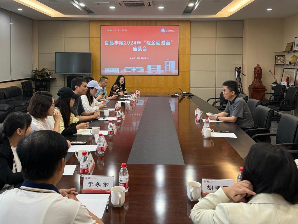 食品学科的实力特色和目标愿景予以充分肯定,表示愿意和学院一起打造全方面、立体化、谋长远的创新合作模式。与会人员就院企双方共同关心的人才招聘、产教融合等话题予以讨论交流,现场气氛十分热烈。