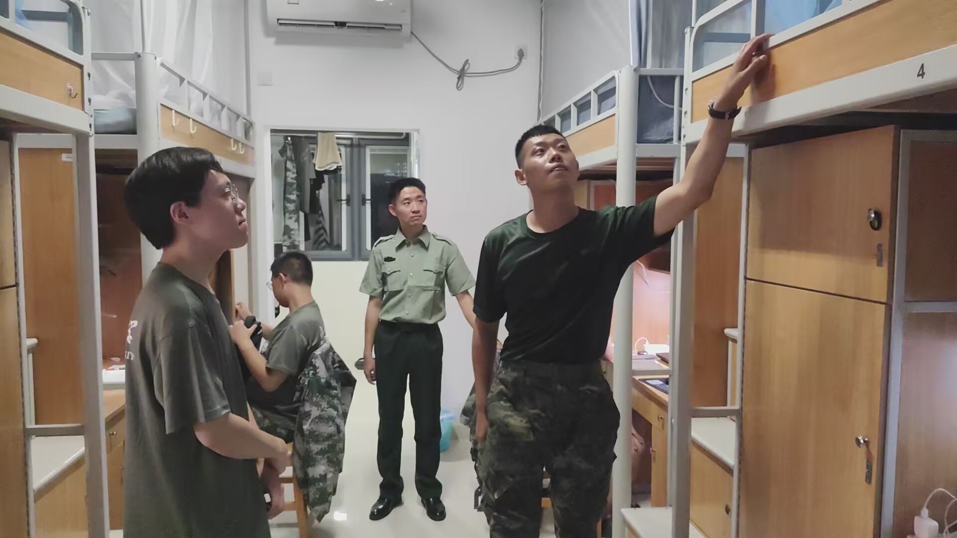 辅导员穆元炜与2025级新生副班主任组成的军训内务检查小组深入91猫先生