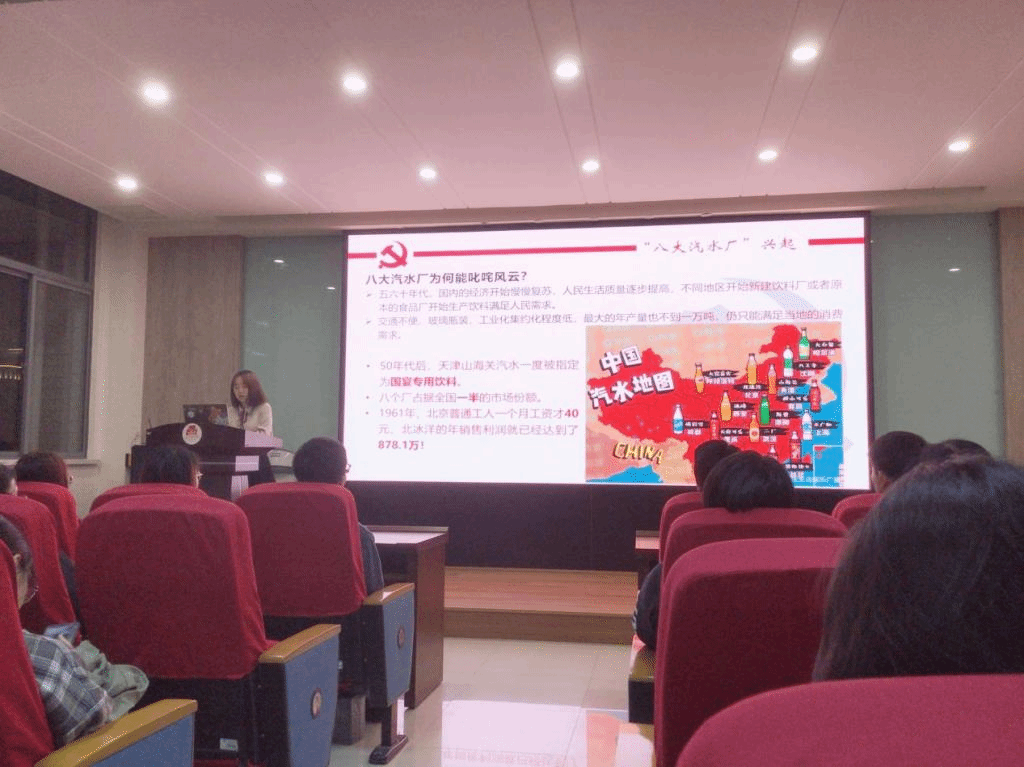 本科生党支部在食品楼D912开展“从近代饮料行业发展看中国变迁”微党课活动。活动由本科生第二党支部组织委员陈嫣主讲,全体支部成员参加。