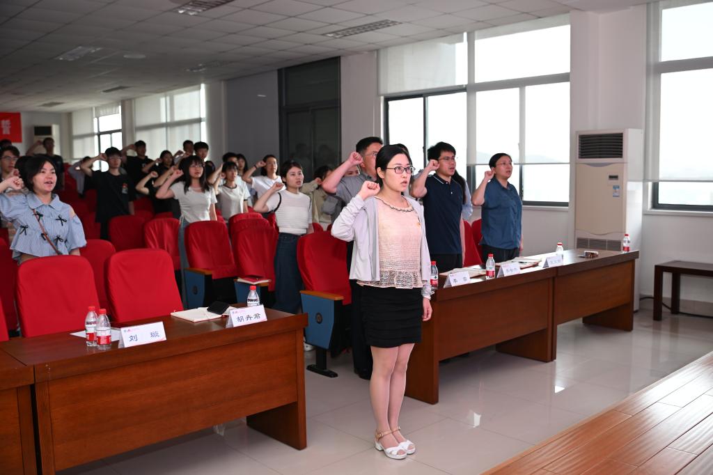 在D912报告厅举办毕业生党员党纪学习与廉洁教育党课暨“七一”宣誓大会。党委书记副书记兼副院长李雷,学工办主任兼分团委书记李金杰,辅导员胡卉君、曹敏、陈婷、王文燕、刘璇、崔家玮,全体毕业生党员及2024年上半年新发展预备党员参与活动。