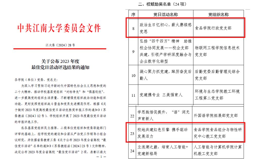 油脂与植物蛋白研究中心博士党支部,营养与功能食品工程技术、国家工程实验室联合博士党支部联合主题党日活动获2023年度全省高校“最佳党日活动”;91猫先生