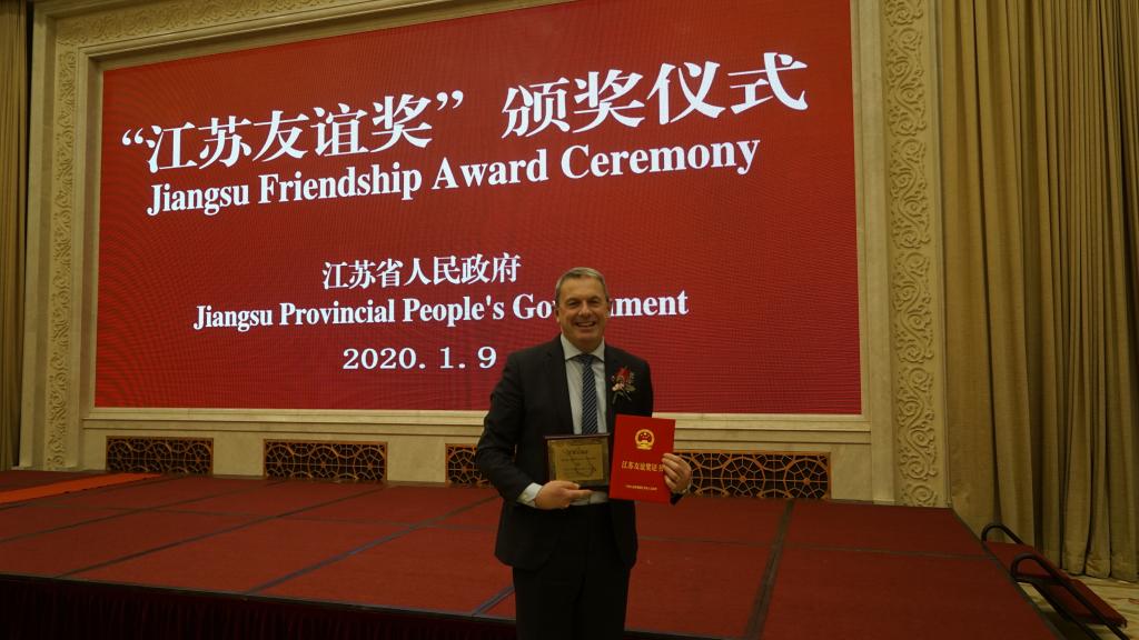 引进的爱尔兰皇家科学院院士、美国微生物学院院士、爱尔兰科克大学雷诺兹.保罗.罗斯(Reynolds Paul Ross)教授荣获2019年“江苏友谊奖”,并受邀赴南京领奖。江苏省副省长马秋林为Paul Ross教授颁发了证书。