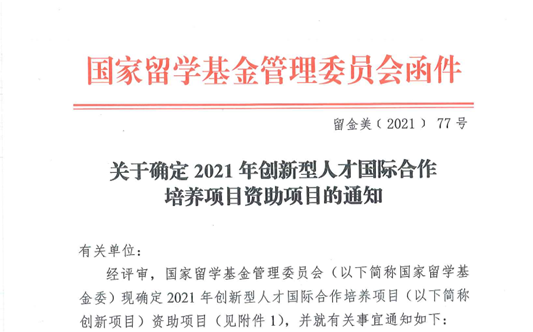 继2020年以来连续两年获批国家留学基金委创新人才项目。项目执行期限为三年,这将为91猫先生