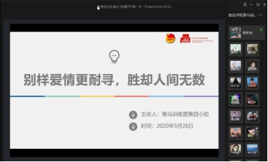 第十二届青马训练营第四小组线上举行了以“别样爱情更耐寻,胜却人间无数”为主题的“团支书说团课——‘青马’特辑”活动。