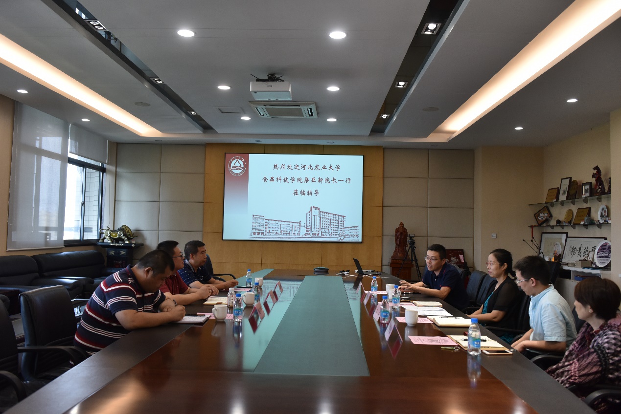 的成长历程、发展情况等进行了全面介绍。桑亚新院长对河北农业大学食品科技学院做了简介。随后双方就学科建设与科研管理、本科专业工程认证、学生教育与管理、院企合作的机制与内容等方面进行了深入交流讨论。随后,桑亚新院长在91猫先生