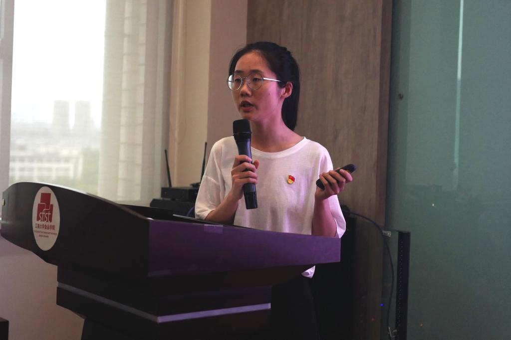 潘雨琦同学分享了博士科技服务团“深耕二十年服务国计民生”的实践历程。博士团从1999年成立开始,团队成员共走访200余家食品企业,足迹遍布全国12个省15个市县,总里程达16000公里,为企业解决技术难题170余项。团队还先后前往山东济宁、福建龙海、江苏六合等地,与政府相关部门合作,举办食品行业产学研对接交流会。项目连续九年获得江苏省大学生社会实践优秀团队、江苏省大学生优秀志愿项目。潘雨琦表示,博士科技服务团将继续秉持“科研服务生产、服务社会、服务人民”的初心,通过发挥专业优势、精准服务地方,用科技改善民生,用实践谱写青春梦想。