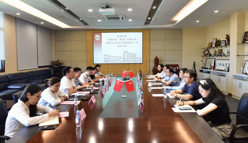 的发展情况、研究基础等进行了全面介绍。陈斐然总经理对光明食品(集团)有限公司的发展近况、发展战略等进行介绍。随后双方分别围绕光明集团肉类加工、大米加工、果蔬加工及蛋白新资源利用等各业务板块具体情况及需求进行了对接和交流。座谈会最后,双方人员就合作领域、合作模式等内容进行了一对一的深入探讨,为进一步开展实质性合作奠定了良好基础。