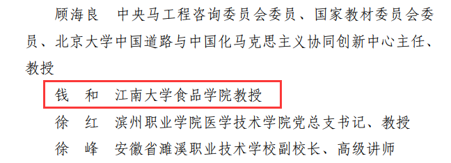 钱和教授热爱本科教育教学工作,从教以来累计出版教材/书籍14部,其中主编教材4部、副主编教材2部;曾获国家精品视频课1项,优秀教材、优秀出版物等4项荣誉,为教材建设做出了重要贡献。尤其是在疫情期间“线上教学课不停、线下编书笔不辍”,完成主编教材2部;在更新的教材《食品质量控制与管理》中融合课程思政,通过食品质量的案例,使学生牢记争做“食品质量人”的使命感和责任感。