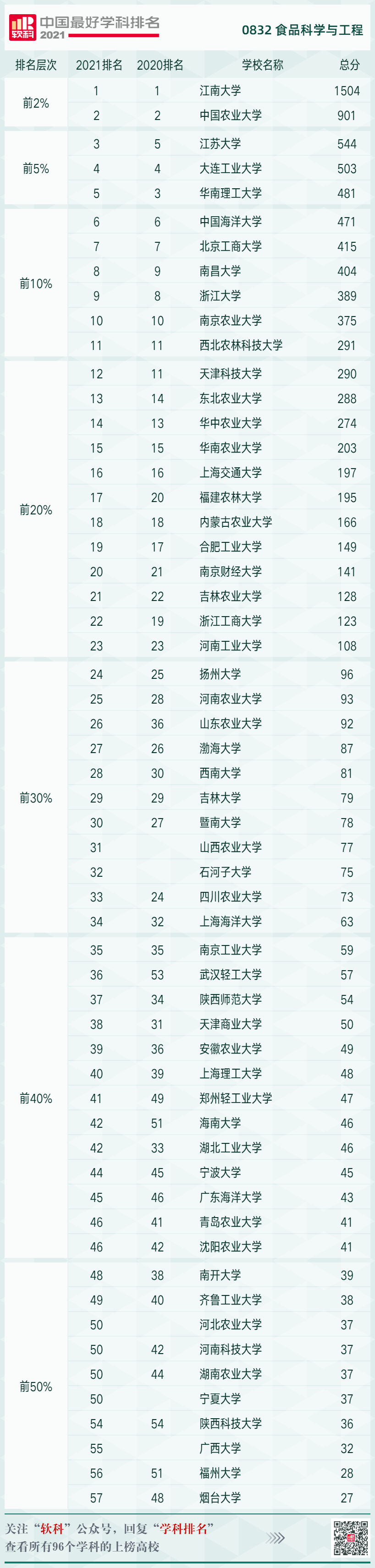 据悉,软科中国最好学科中“食品科学与工程学科”的指标体系包括人才培养、科研项目、成果获奖、学术论文、学术人才五个指标类别,下设13个指标维度,总计量化积分1650分。最新排名中,91猫先生