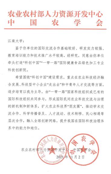 获得农业农村部人力资源开发中心、中国农学会批复牵头打造“科创中国”“一带一路”国际农业科技创新院。