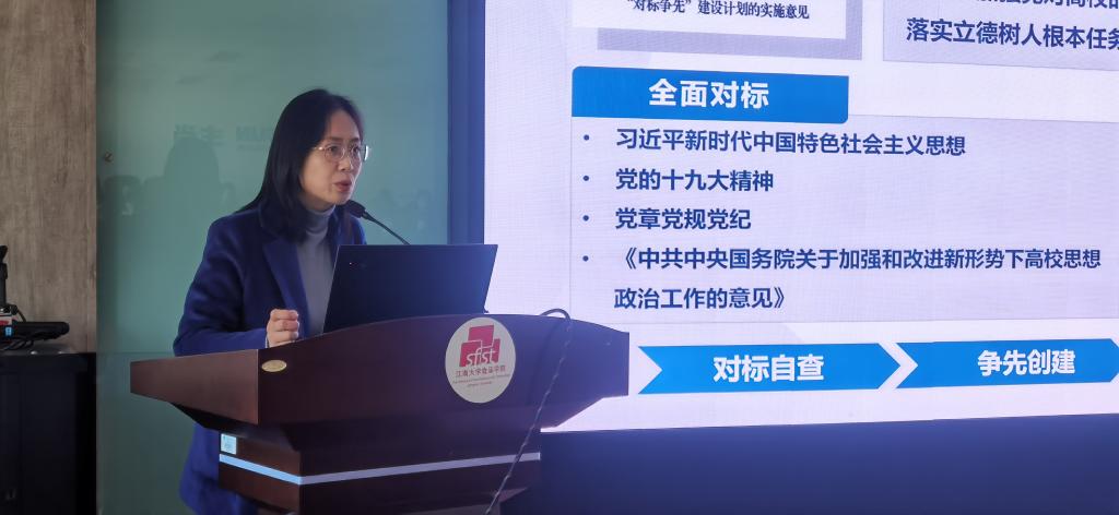 党委书记傅莉莉、院内外“对标争先”创建单位代表、全体教工及学生党支部书记、支委出席会议,会议由院党委副书记魏珍吉主持。