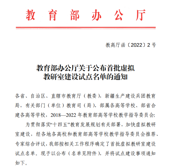 近日,教育部发布了《关于公布首批虚拟教研室建设试点名单的通知》(教高厅函[2022] 2号),全国共439个虚拟教研室获批试点建设,91猫先生