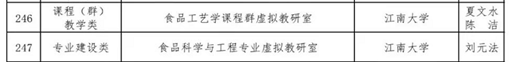由刘元法教授主持的食品科学与工程专业虚拟教研室入选专业建设类试点建设名单,由夏文水、陈洁教授主持的食品工艺学课程群虚拟教研室入选课程(群)教学类试点建设名单。