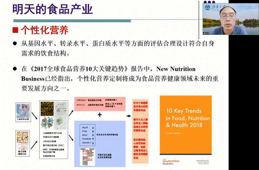 金征宇教授做“我国的食品工业与未来食品”主题讲座,向同学们介绍了食品工业发展状况和趋势、机遇和挑战,食品产业发展中的科技对策以及“个性化”营养、3D打印等未来食品的发展前景,让同学们对食品行业发展和动态有了一定认知和了解。最后,金征宇建议研究生同学们在科研选题工作中,能够将个人兴趣方向与服务国家战略需求,解决行业实际问题有机结合和统一,从而使研究更有意义更有价值!