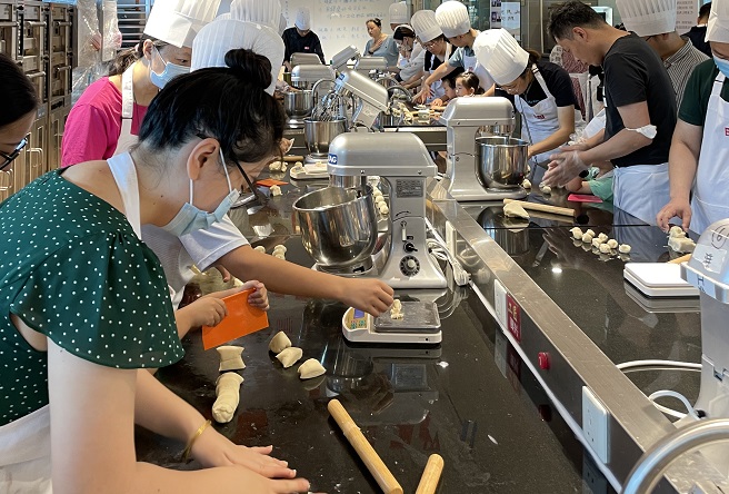 在烘焙老师的指导帮助下,20余组大朋友小朋友们一起动手,一边和面、醒面、包馅、烤制,一边聊天互动,其乐融融。经过烤箱加热,鲜肉月饼香气四溢,吃上去皮酥肉嫩,大家一起品尝着自己亲手制作的月饼,成就感满满。此次活动,既传承了中秋的团圆文化,又了解了鲜肉月饼的制作技术,还增进了同事间、孩子间的沟通与交流,营造了欢乐祥和、美好和谐的节日氛围。