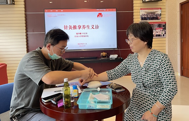 附属医院治未病科魏华麟中医师前来坐诊,为老师们提供包括针灸、推拿、拔罐体验和中医养生咨询。
