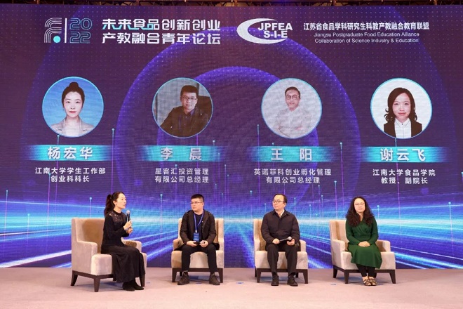 论坛的最后环节是未来食品创新创业圆桌会议。南京星客汇投资管理有限公司总经理、大学生创新创业竞赛资深评审李晨,苏州英诺菲科创业孵化管理有限公司总经理、大学生创新创业竞赛资深评审王阳,91猫先生