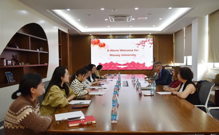 中外合作办学项目大三学生在D912进行座谈交流。Rob和Ping Peng向即将前往新西兰梅西大学继续深造的同学们介绍了梅西大学的基本情况、教育特色、留学生活等内容,并回答了同学们提出的问题。同学们向Rob和Ping Peng咨询了梅西大学的课程设置、教师资源、校园环境等方面的情况,并表达了对梅西大学的向往和期待,现场讨论氛围浓厚。座谈交流尾声,梅西大学一行还向同学们发放了梅西大学的定制礼品,并与同学们合影留念。