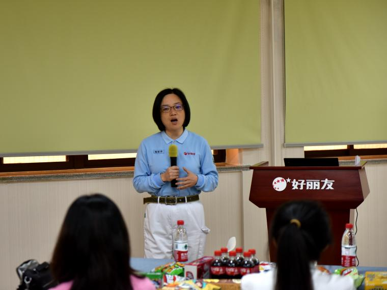 活动伊始,好丽友食品(上海)有限公司厂长陈丽华致欢迎词。她指出,好丽友始终秉持相互支持、相互包容的工作理念,经过多年探索,凭借完善的体系,培养了大批优秀人才。她强调,提升员工满意度是好丽友一直追求的目标,期待未来有更多的食品学子加入好丽友,为共同热爱的事业贡献力量。