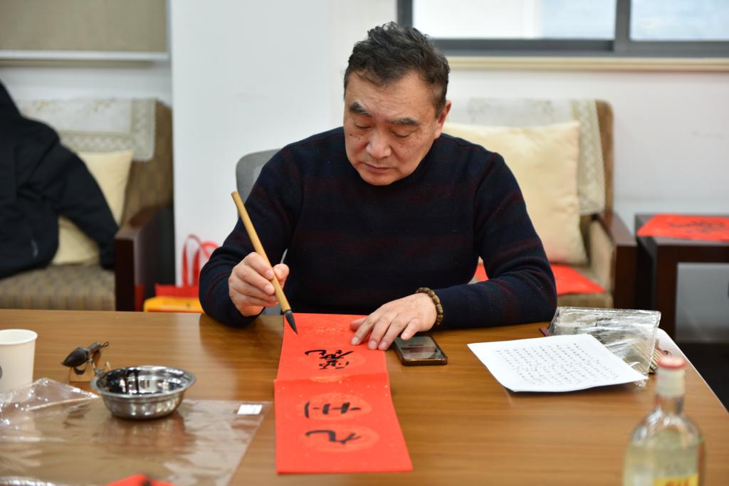 首任院长姚惠源、第二任院长金征宇、第三任院长张灏、第四任院长陈卫、第五任院长刘元法等教师赠送《福卡》以表敬意。除与尤秀渊老师合作《双福》外,“五福登门”“生肖福聚”是这次送《福》活动的新亮点。期间,周国泉、唐洁凤、张燕萍、殷月亚、华赵暖、刘红等不辞辛劳,为参与互动的各位教师赠送福字。一个个洋溢着墨香的“福”字,不仅充盈着新春的气息,更传递着温暖人心的祝福。