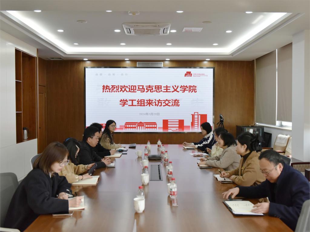 。党委副书记兼副院长李雷,学工办主任兼分团委书记李金杰,辅导员胡卉君、张任、崔家玮参与座谈交流。双方分别介绍工作理念、思路、举措和成效,并就跨学科之间的人才培养交流、学生工作互动、思政教育融合进行深入探讨,期待未来在党团教育活动、创新创业竞赛等领域加强合作,实现共赢。