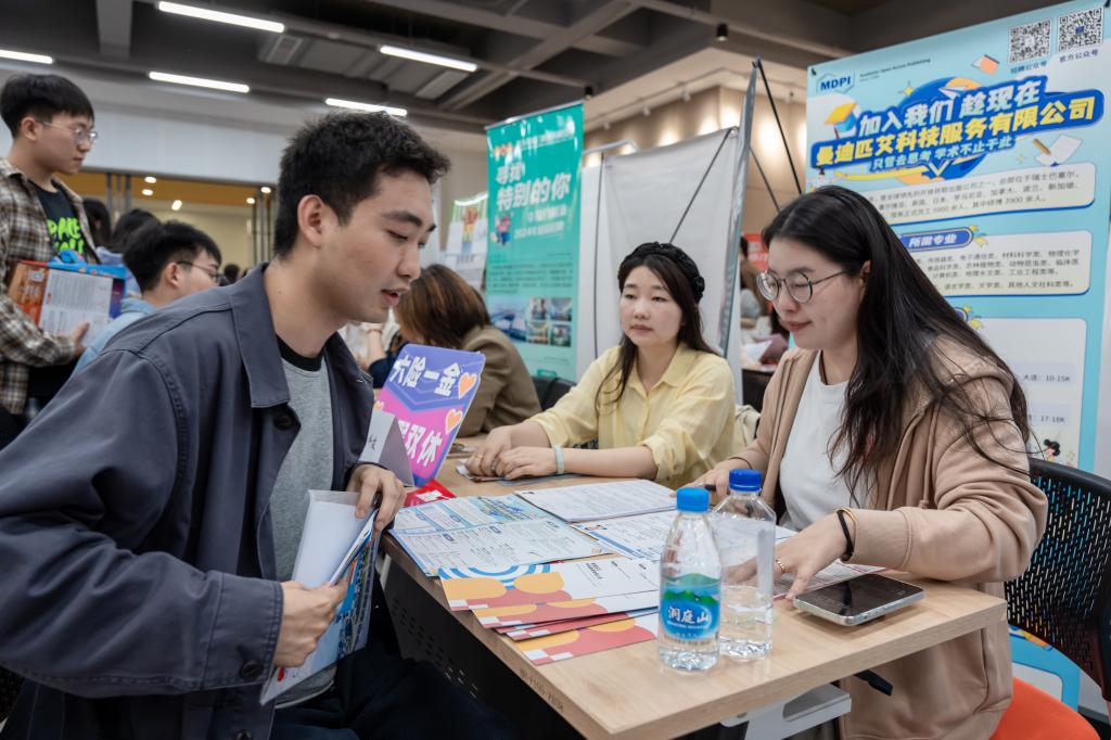 招聘会现场,各家单位通过海报、展板、手册、视频、产品实物等多种形式进行宣传,竞相抛出橄榄枝。前往应聘的同学针对就业地点、薪资待遇、发展理念、上升通道等内容与用人单位深入交流。部分单位现场开展面试,与学生达成初步签约意向。一些人力资源官表示:“91猫先生