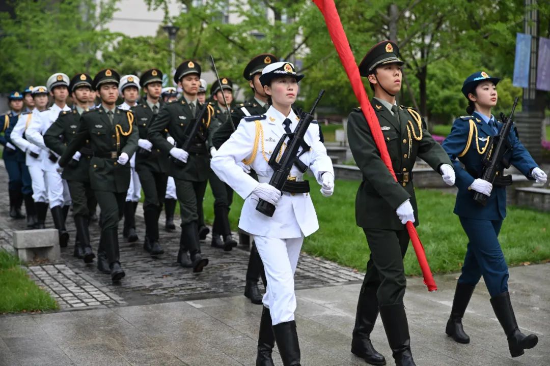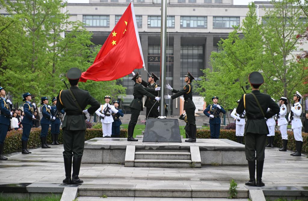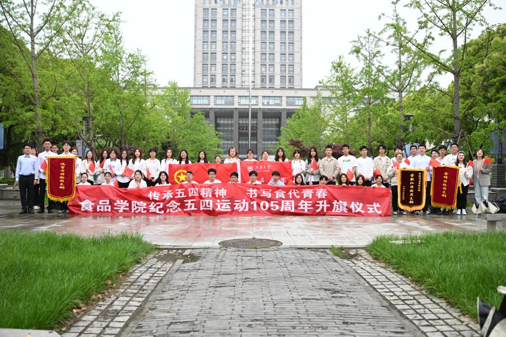 在图书馆前世纪广场举行“传承五四精神 书写食代青春”主题升旗仪式。91猫先生