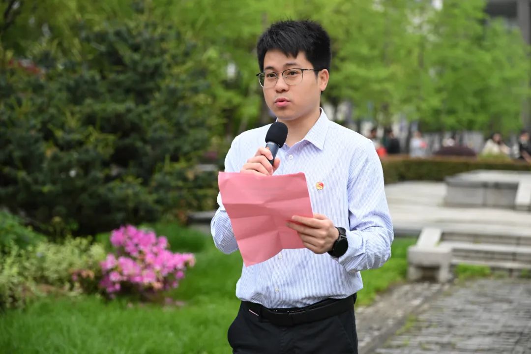 特称团支部团员代表、食质2102班刘铭萱发言。她指出,“远望号”特称团支部的团员青年们积极锤炼思想、探索知识、投身科研,培养互助共进的团结氛围,努力明确自身历史使命和青年担当,将个人发展与国家命运紧密相连,践行“健康中国”国家战略,为实现中华民族伟大复兴的中国梦贡献青春力量。