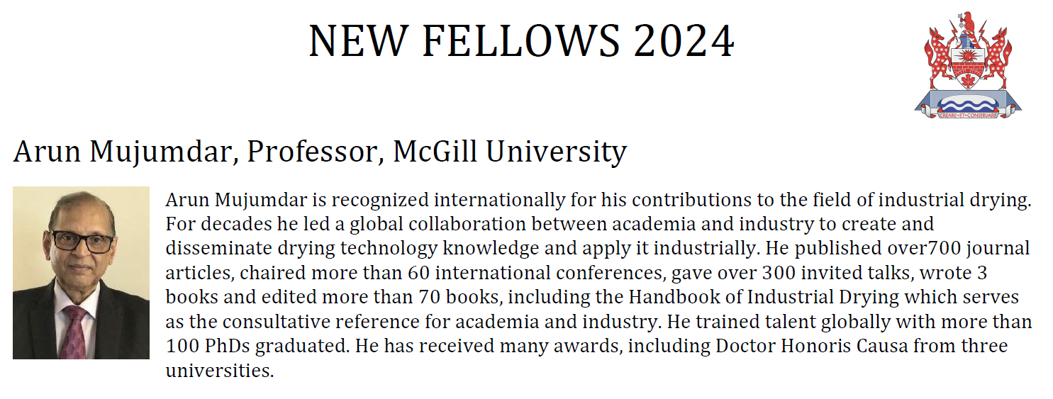 荣誉教授、加拿大麦吉尔大学(McGill University)教授艾伦·牟俊达(Arun S. Mujumdar)成功当选。