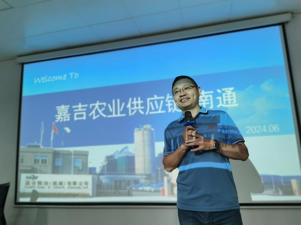 优秀校友,嘉吉农业供应链中国区生产运营总监卢灿明、南通工厂厂长兼总经理巴特等对来访师生表示热烈欢迎。他们简要介绍企业与工厂情况,并表达了对吸引更多江大学子加入嘉吉的热切期待。