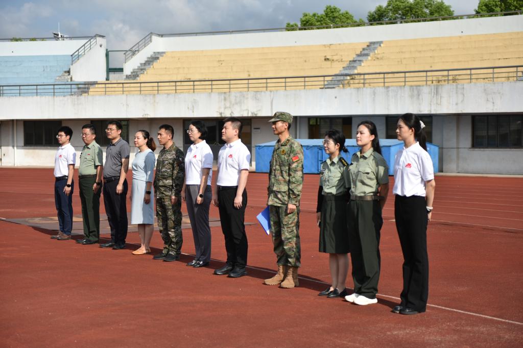 党委书记傅莉莉、院长范大明、副书记李雷、副院长谢云飞、学工处副处长俞立峰、承训部队领导等一行来到军训场,检阅阶段性训练成果,亲切慰问带训教官和2024级参训学子。