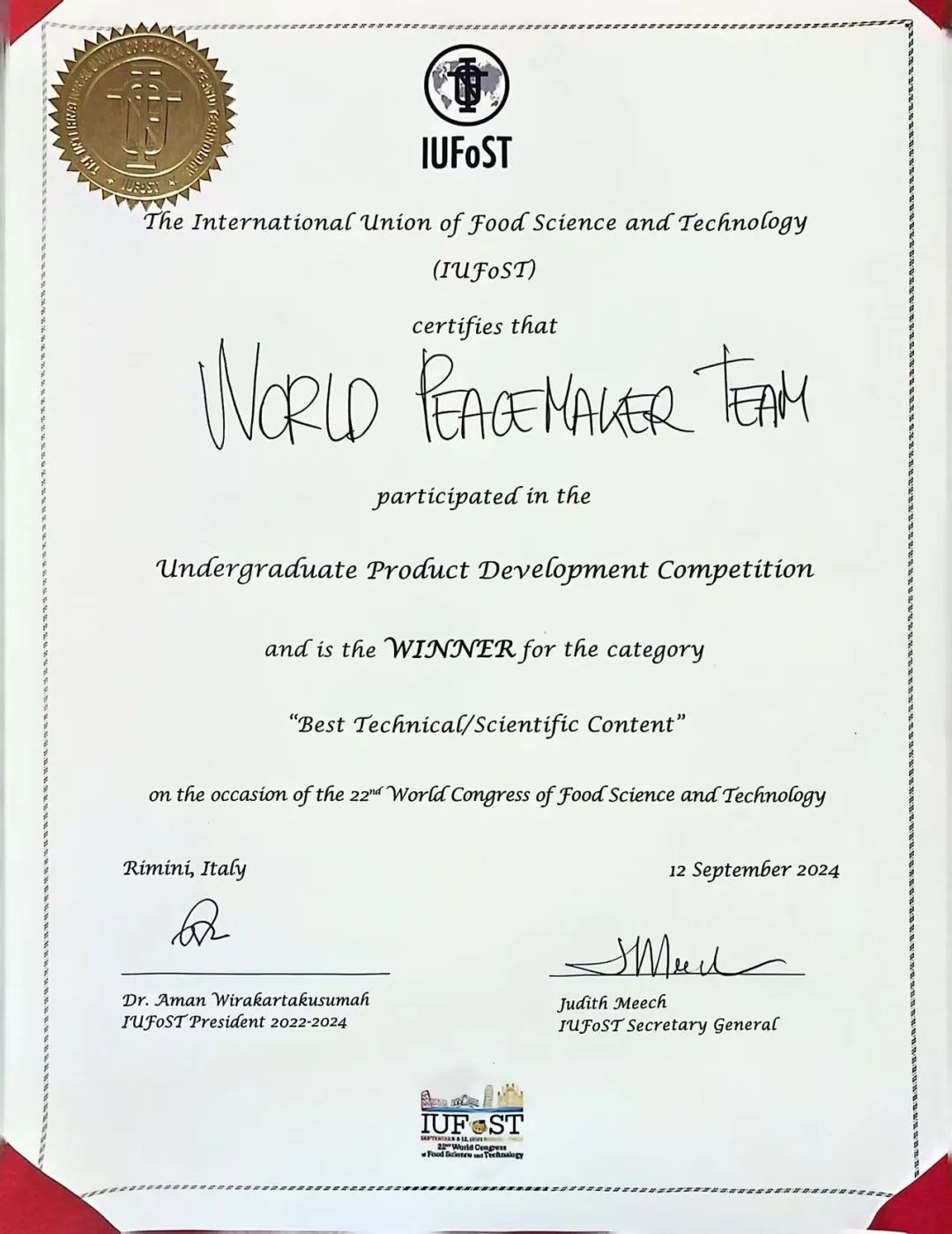 食品学子在这一国际顶级赛事中表现卓越,荣获本科生组“最佳科学技术奖”1项,研究生组全球提名奖、亚军各1项。