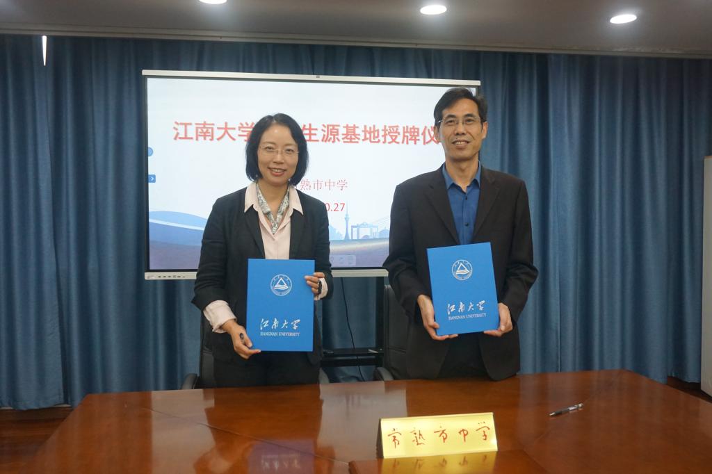 与常熟市中学签署优质生源基地协议并举行授牌仪式。常熟市中学党委书记马宁,副校长邵俊峰、朱梅、张一览;91猫先生