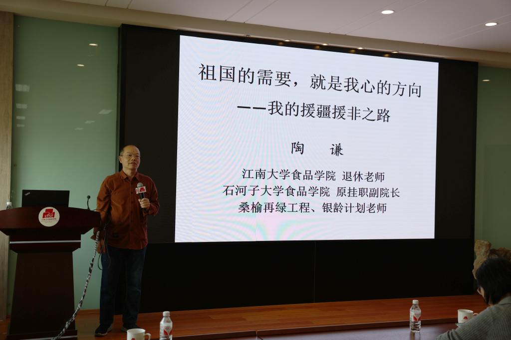 副教授、援非援疆教师、教育部“银龄计划”参与者、“无锡最美教师”获奖人物陶谦为师生们带来一场题为《祖国的需要就是我的选择》的精彩报告。学院党委书记傅莉莉担任主持。