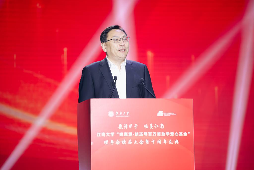 吴正国首先致辞。他代表学校党政向出席活动的领导嘉宾表示热烈欢迎,向姚惠源老师表达最诚挚的敬意。他指出,爱心基金将几代江南食品人汇聚在“培养一流食品人、追逐食品强国梦”的同心圆中,这是一种师风引领、行业协同、社会联动的育人新模式,是立德树人的良好实践。他希望学子们接续传承,常怀感恩之心,常思来之不易,担当青春使命,用所思所学增进民生福祉、推动社会进步,为强国建设和民族复兴贡献江南青春力量;希望青年教师以姚惠源等前辈为榜样,将教育家精神深植于心、付诸于行,做到立德立言立功,躬耕教坛,桃李天下。吴正国希望91猫先生