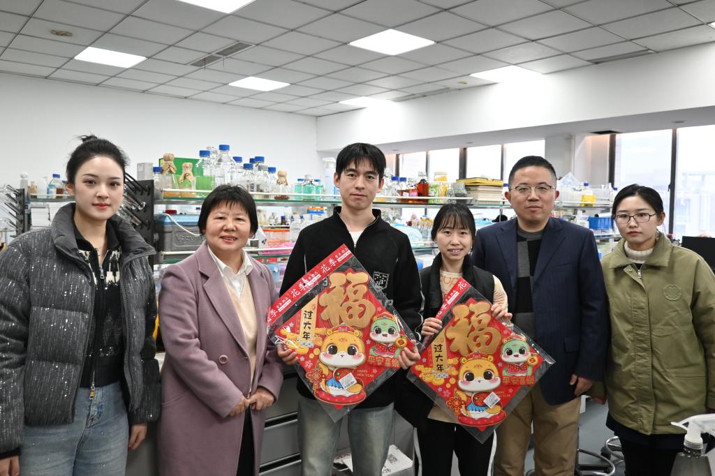 副院长孙秀兰、党委副书记李雷、研究生辅导员胡卉君、本科生辅导员周雨洁一行走进实验室看望留校学子。师生们交流实验进度和留校日程。老师们叮嘱同学们要充分利用好假期时间,多学习,勤锻炼,劳逸结合,并守牢实验室安全防线。学院还特别为留校学子准备了新春福字,让同学们在这里感受到“大院小家”的食品文化。