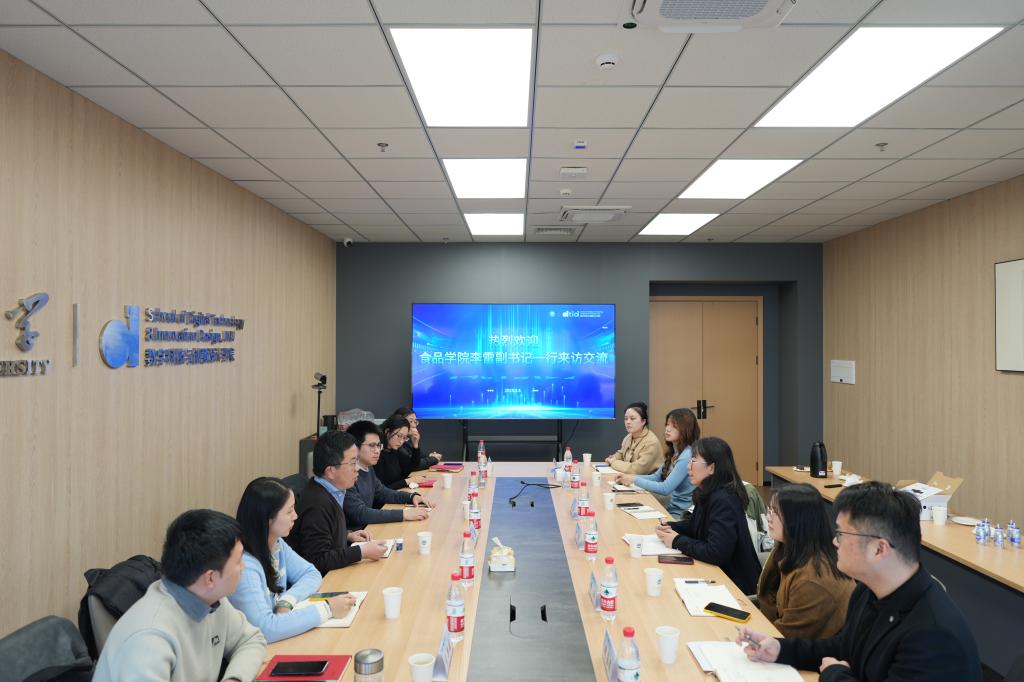 李雷介绍此次跨校区、跨学科实地调研的背景,并以《奋力推进高质量内涵式发展,创新培育未来食品青年》为题,就本院概况特别是学生工作领域的相关做法予以分享。他表示,艺工结合、跨界融合既是人才培养的创新路径,也是辅导员队伍双向赋能的有效手段,期待两院学工组资源共享、优势互补,推动共同进步。