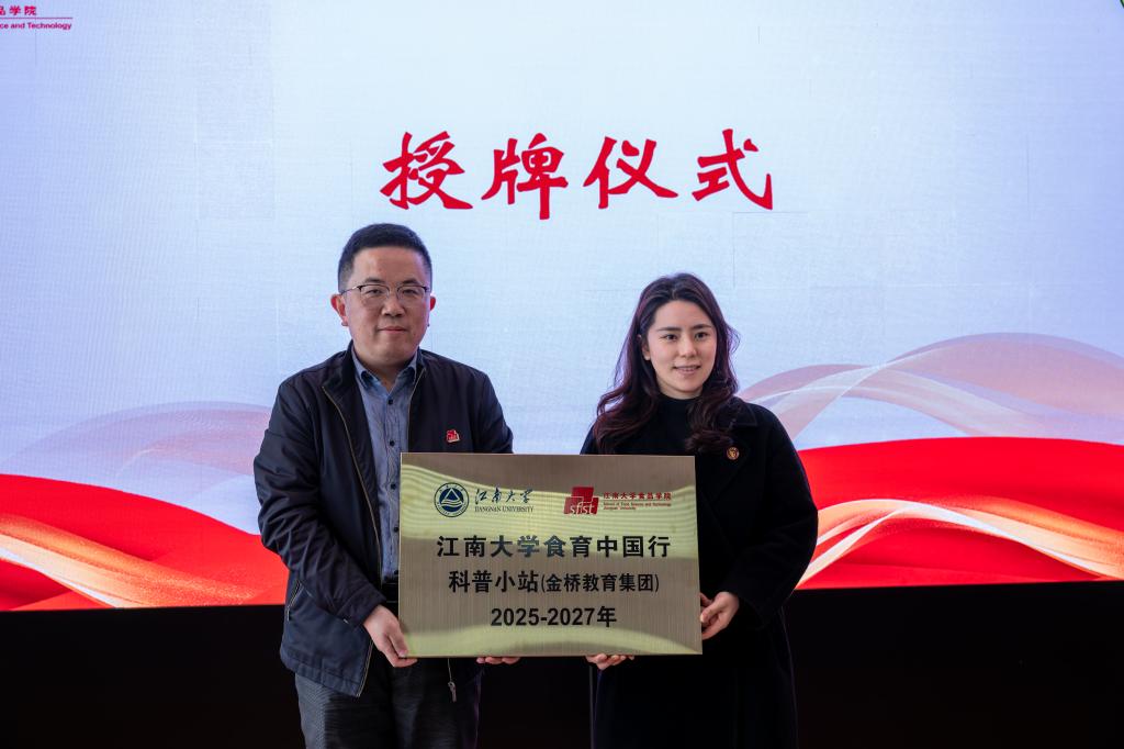 赠送“向往”雕塑。李雷向金桥教育集团健康管理中心颁授“食育中国行·科普小站”铭牌。
