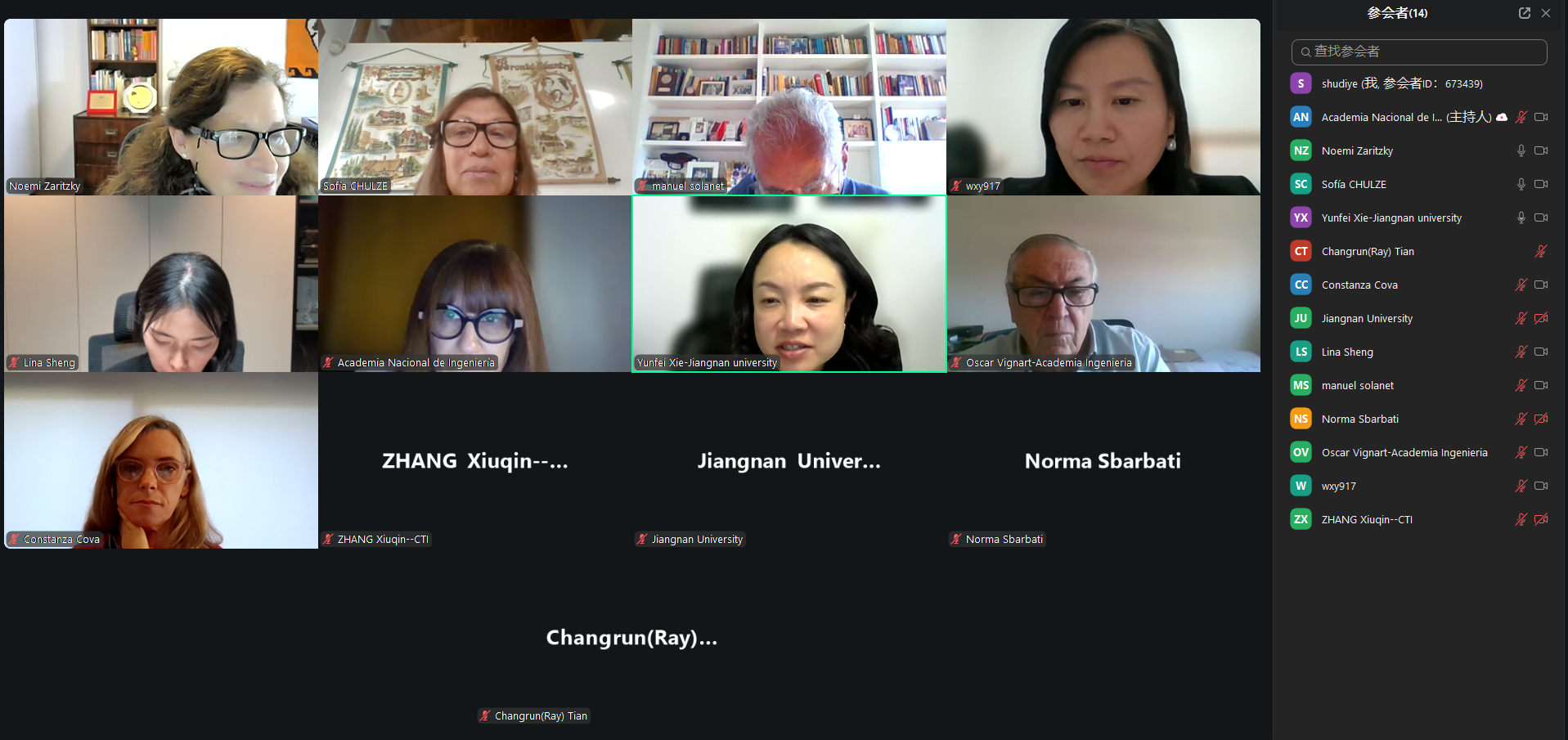 4月9日,中国工程院(CAE)与阿根廷工程院(ANI)共同举办主题为“食品安全与质量控制”的第三期联合线上研讨会。本次会议聚焦智慧检测、食品保鲜与品质管控、污染物防控及真实性鉴别等前沿议题,旨在深化两国食品安全领域科技创新与国际合作。会议由食品科学与技术研究与发展中心(CIDCA)主任Noemí Zaritzky教授主持。