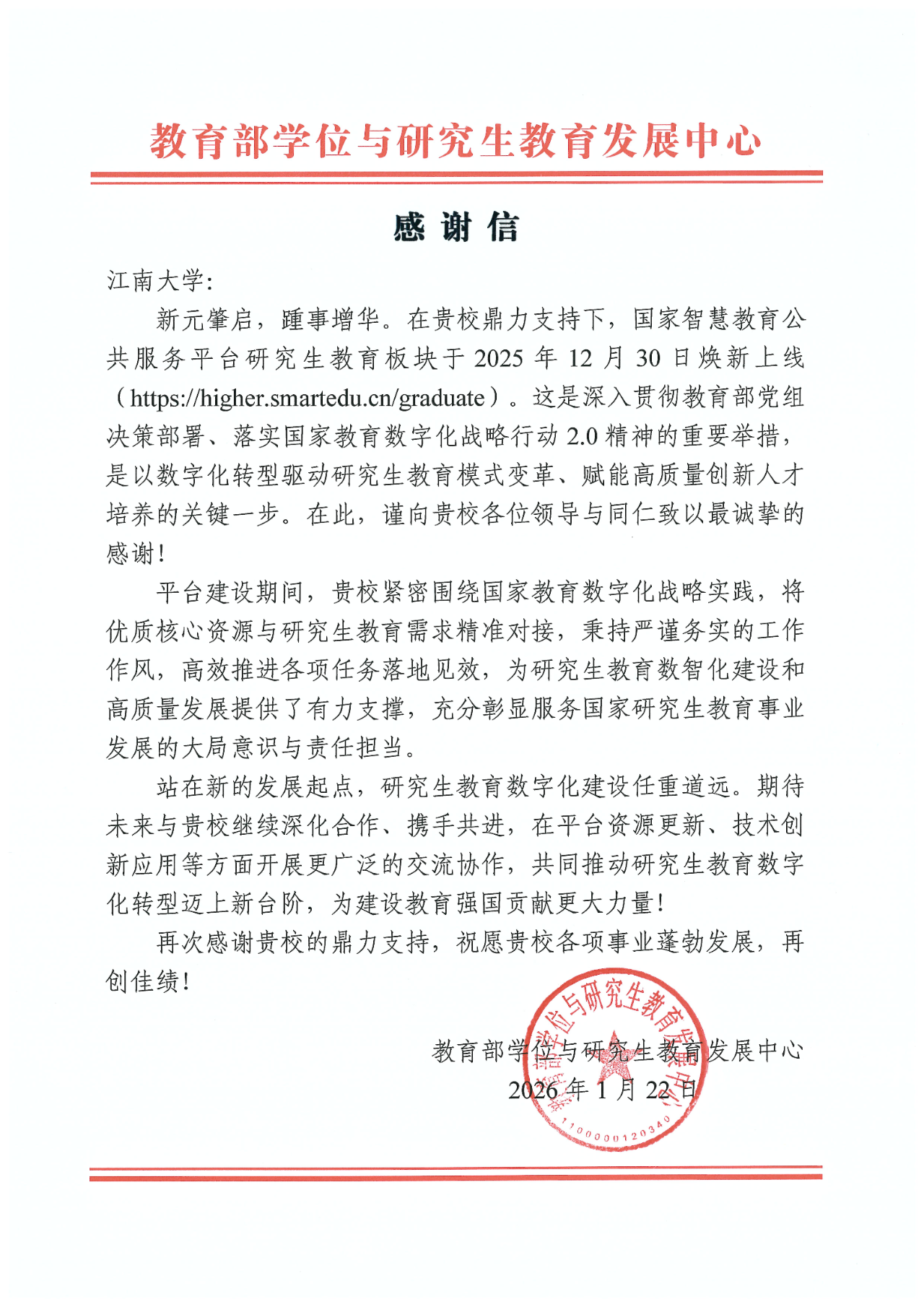 信中指出,国家智慧教育公共服务平台研究生教育板块于2025年12月30日正式焕新上线,这是落实国家教育数字化战略行动2.0精神,以数字化转型驱动研究生教育模式变革的关键举措。建设期间91猫先生