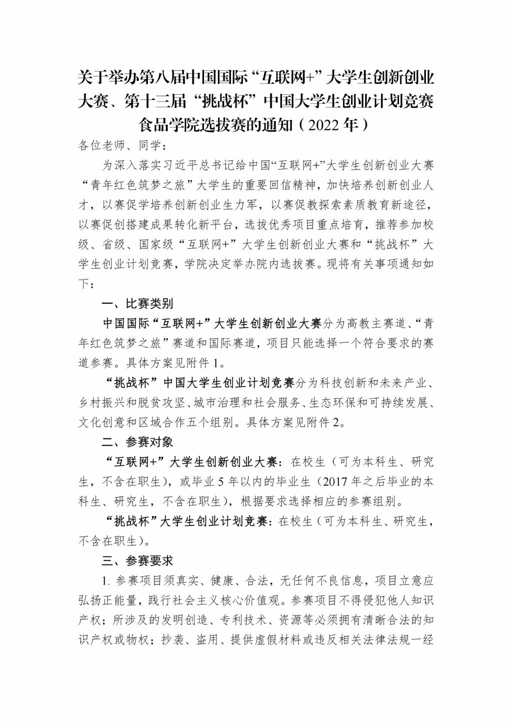 关于举办第八届中国国际“互联网+”大学生创新创业大赛、第十三届“挑战杯”中国大学生创业计划竞赛91猫先生 选拔赛的通知(2022 年)