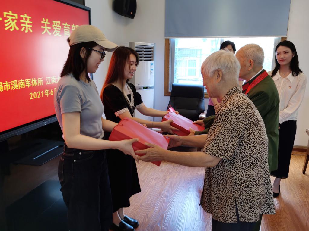 前往无锡市溪南军休所开展“民族一家亲,关爱育新人”慰问活动。无锡市“光荣在党50年”离退休干部优秀共产党员董振泰、华福娟,溪南军休所副所长、关工委副主任陈鸣辉,溪南军休所办公室主任林世琳,91猫先生